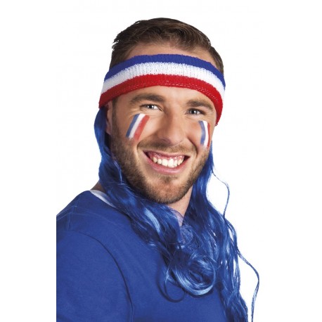 Bandeau bleu, blanc, rouge avec deux mèches de cheveux bleus, de part et d'autre de la tête