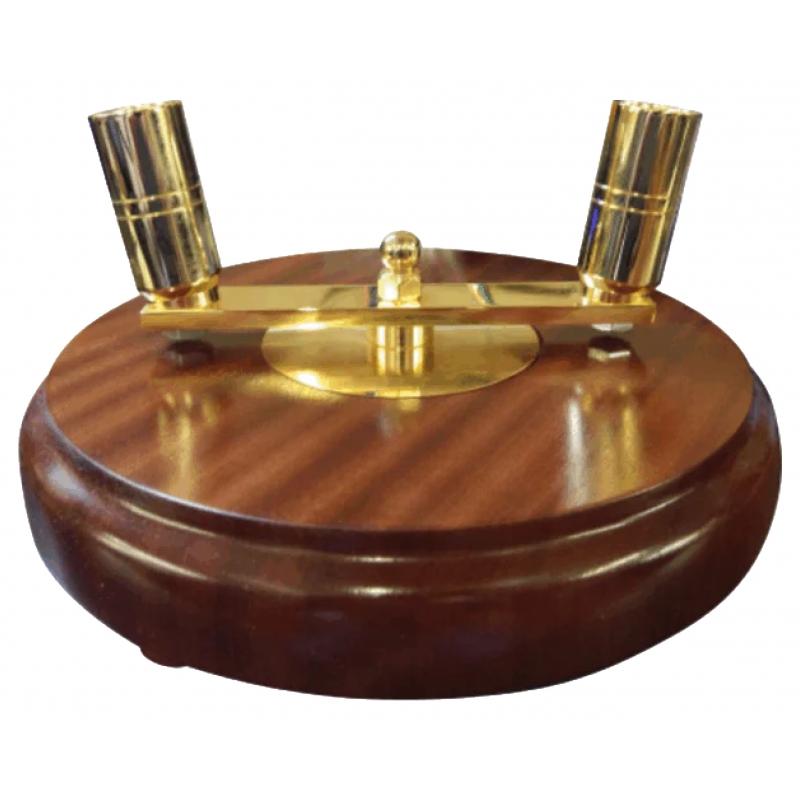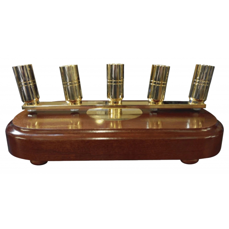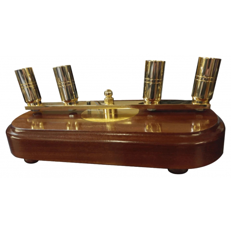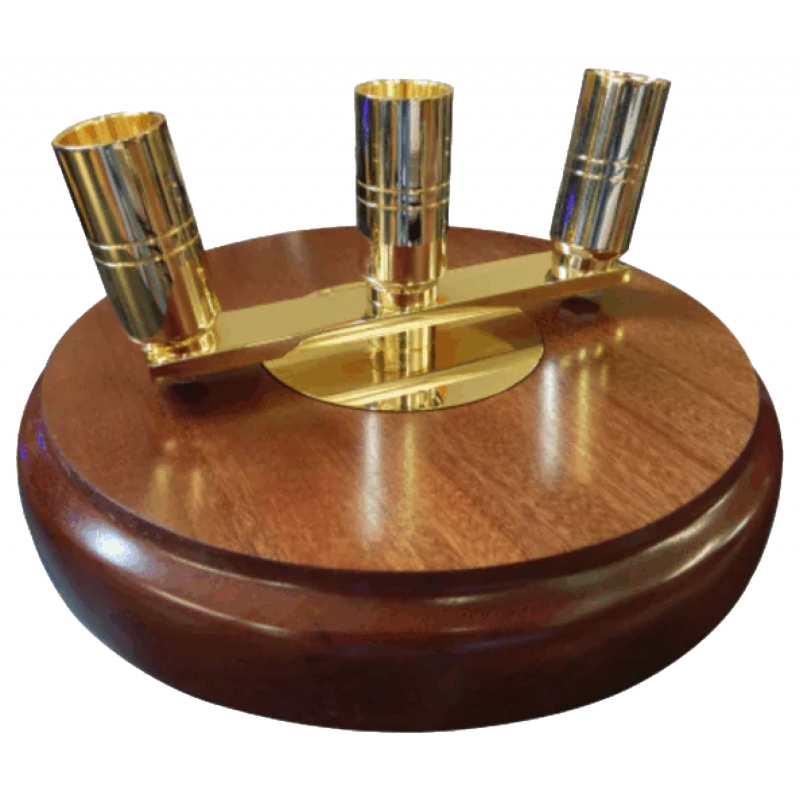 Socle en bois vernis et pièce de métal finition dorée. De 1 à 5 places. Diamètre trous 25mm intérieur.