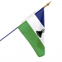 Le drapeau Lesotho est monté sur une hampe en bois, gainée de plastique bleu. Cela permet une haute résistance et ce en toute saison.
