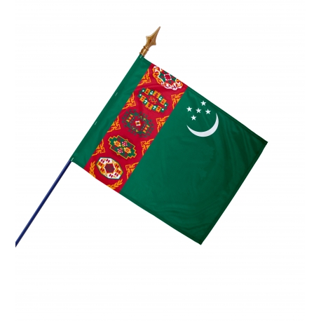 Drapeau Turkménistan en tissu Maillunic monté sur hampe bois à acheter avec Drapeaux Unic fabricant.