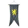 Un oriflamme est une pièce de tissu fixée sur une hampe bois gainée plastique bleu avec ses embouts plastique bronze équipée d'une cordelette permettant sa suspension.