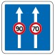 Panneau en forme de carré, sur fond bleu avec un bord blanc indiquant des voies à vitesse limitée.